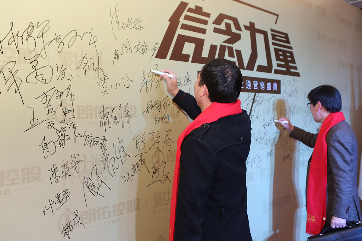 会议现场灯光璀璨、战旗飘扬,签名墙的设置,再加上50多米长的红毯一直延伸至会场门口,使气势恢弘的场面显得更加庄重大气、熠熠生辉。营销精英们盛装出席,为自己的2016年留下浓墨重彩的一笔。眼前的一幕幕,是各位营销精英们付出与回报的缩影,也是荣耀与辉煌的见证。