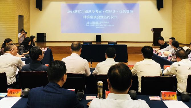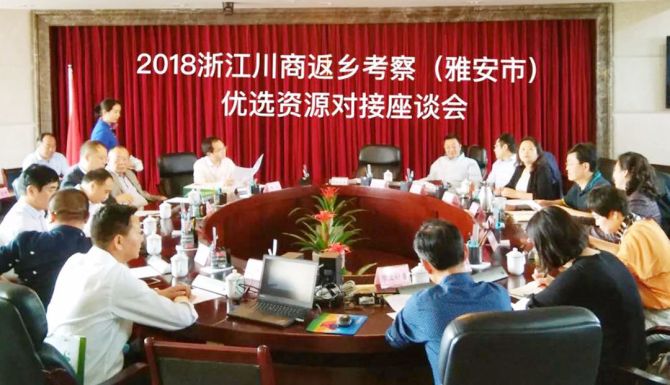2018年4月21日—22日,浙江川商返乡考察团受到雅安市委常委、常务副市长徐一心、雅安市政协副主席李亚蓉以及荥经县委副书记、县长李荣等领导接见,浙江省四川商会分别与雅安市政府及荥经县政府签订了《战略合作协议》。考察团参观了浙江省四川商会高级顾问王德军投资10.6亿元的在建项目——新庙水电站。雅安市委、荥经县委政府相关部门负责人陪同参加会见。