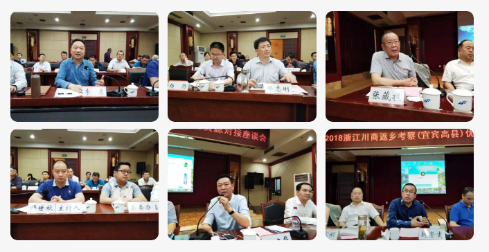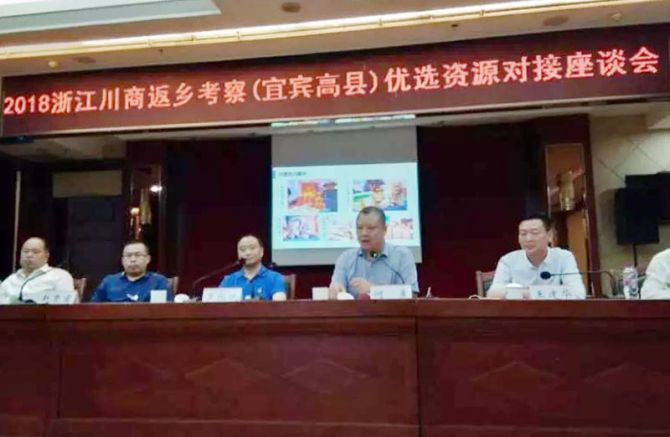 2018年4月20日,浙江川商返乡考察团受到宜宾市高县县委书记李康等领导接见,并与宜宾市高县在“四川优选资源精准对接”和“川货出川”方面达成合作共识。