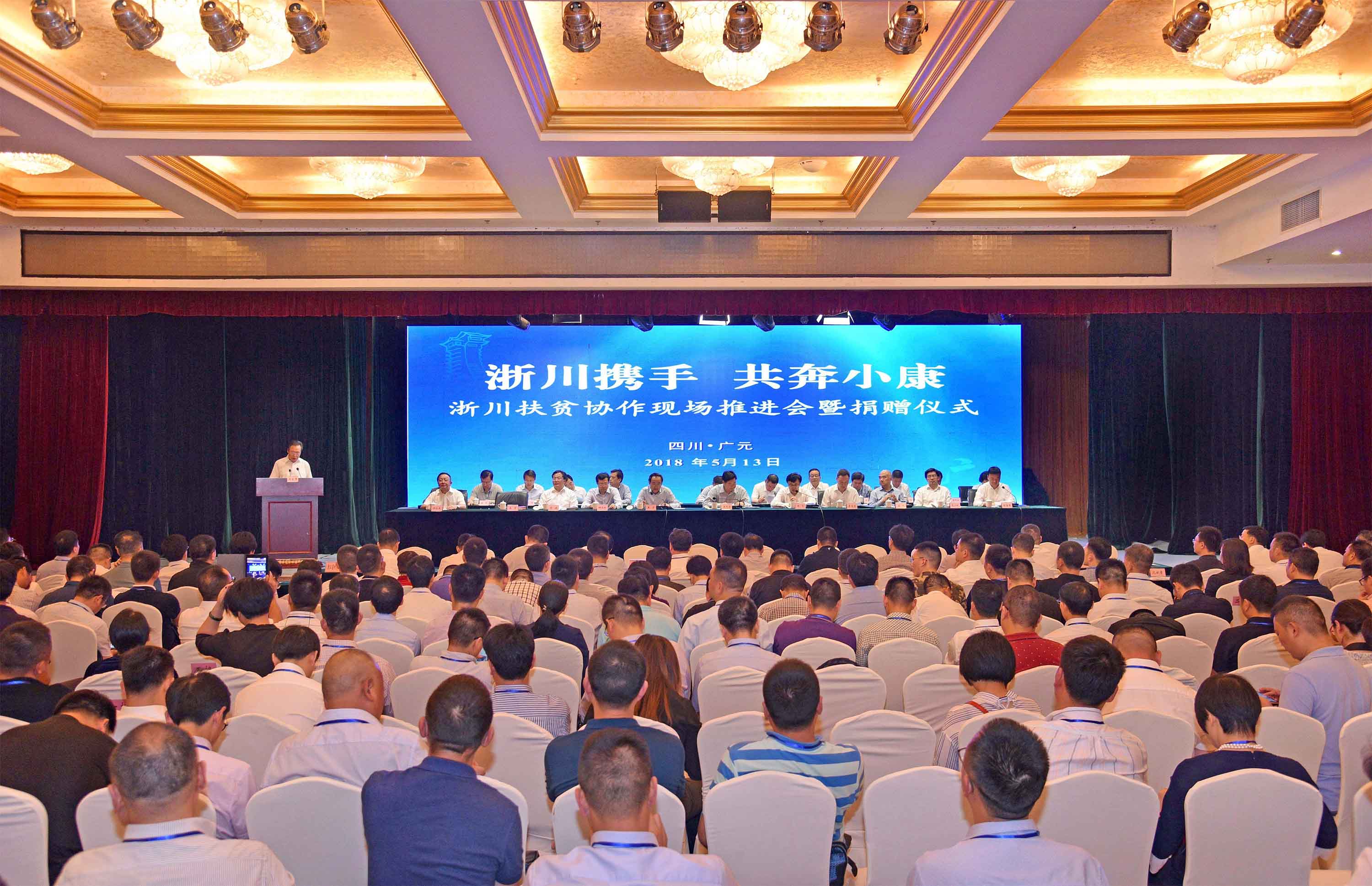 2018年5月13日,浙江省工商联组织100多家民营企业在国务院扶贫办领导和浙江、四川两省领导的共同见证下参加“浙川携手共奔小康”现场推进会暨捐赠仪式。国务院扶贫办副主任洪天云,四川省委常委、常务副省长王宁,浙江省委常委、常务副省长冯飞等领导出席。浙江省四川商会执行会长、朗佑控股董事长何勇先生受邀参加此次会议。