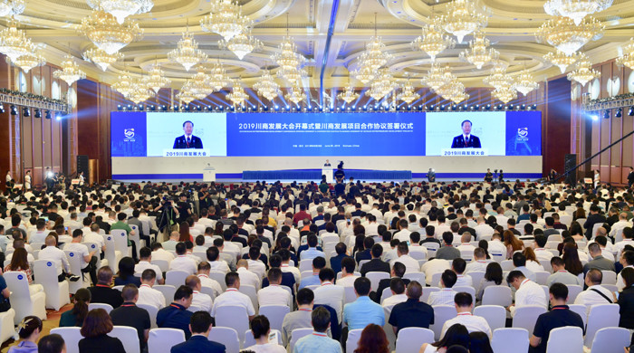 6月26日上午,2019川商发展大会开幕式暨川商发展项目合作协议签署仪式在成都举行,来自境内外的1500多名川商、知名企业和商(协)会负责人齐聚蓉城,共叙桑梓之情、共谋发展新篇。省委书记彭清华出席开幕式暨合作协议签署仪式并致辞,省委副书记、省长尹力主持,省政协主席柯尊平出席,全国工商联党组副书记、副主席樊友山致辞。本次大会以“聚力川商新时代•拥抱四川新发展”为主题,由1场主体活动、多场专项活动组成,包括2019天府论坛、川商扶贫公益音乐晚会、2019川商发展大会投融资会和2019青年川商发展峰会。