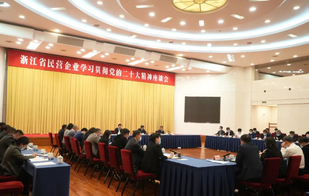 为深入学习贯彻党的二十大精神和省委部署要求,引导广大浙商坚定不移听党话、跟党走,在高质量发展中勇当“两个先行”排头兵,为全面建设社会主义现代化国家、全面推进中华民族伟大复兴作出浙商新的更大贡献,10月26日,浙江省民营企业学习贯彻党的二十大精神座谈会召开。省委常委、统战部部长邱启文出席会议并讲话,省委统战部副部长、省工商联党组书记徐国龙主持。