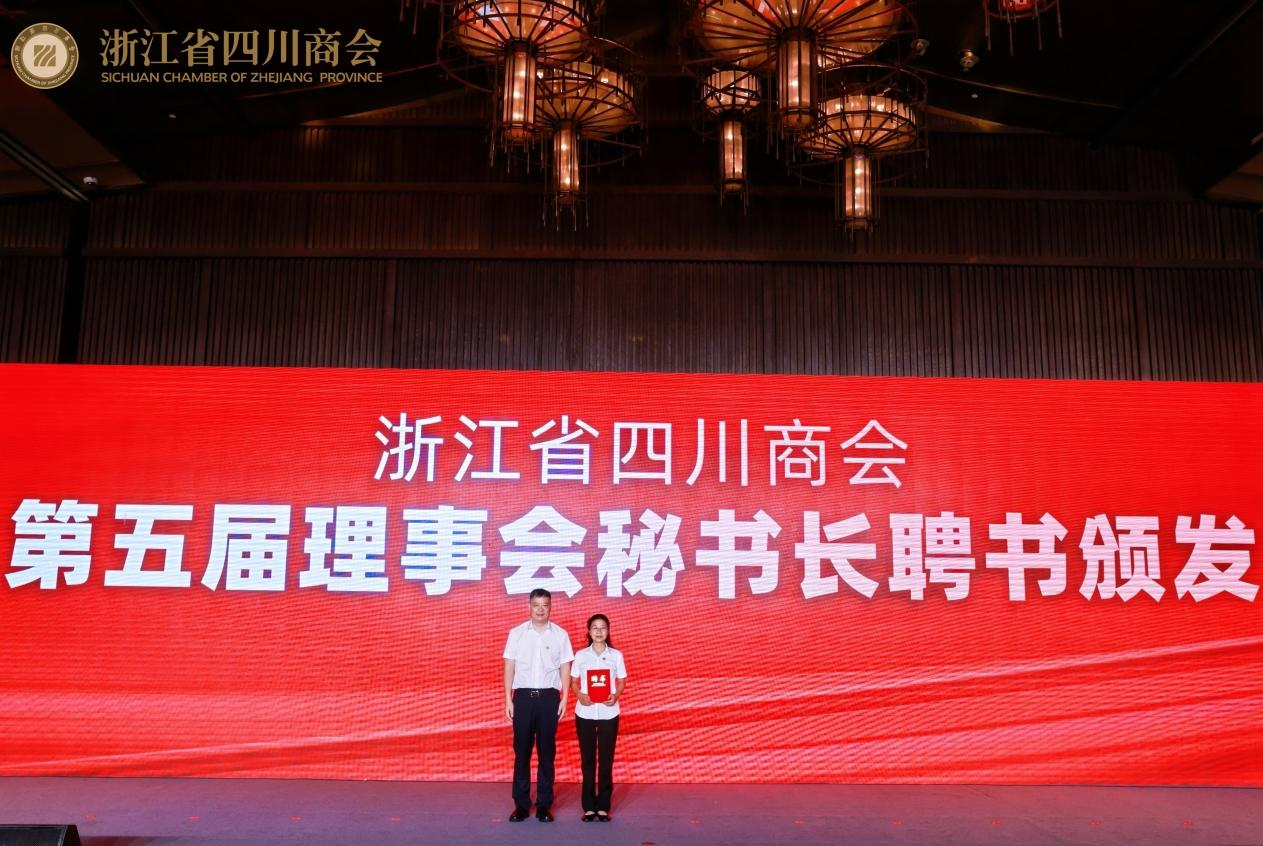 浙江省四川商会会长、朗佑控股董事长何勇为第五届理事会秘书长颁发聘书