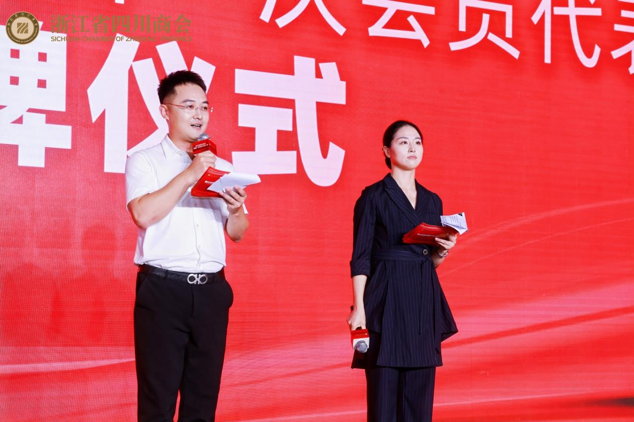 浙江省四川商会监事会主席陈均,商会党支部书记、常务副会长姚文宏为商会第五届会员单位授牌