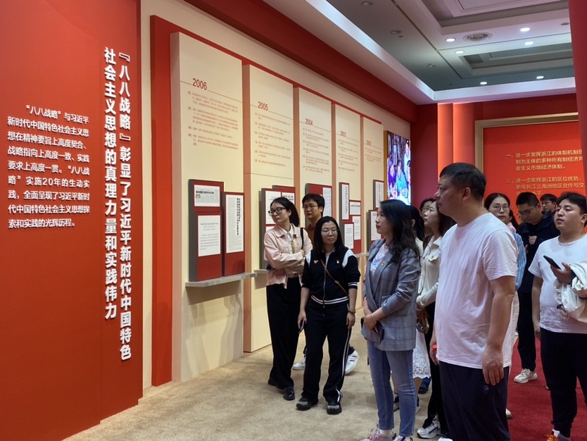 本次展览由综合展区和地方展区两个部分构成。综合展区分为”伟大擘画”、“精彩蝶变”、“勇立潮头”三个篇章,通过讲解员的介绍,党支部成员领略到“八八战略”给浙江带来的精彩蝶变。地方展区以“共谱华章”为主题,记录了浙江11个地级市贯彻“八八战略”的生动实践,彰显“八八战略”历久弥新的真理力量和实践伟力。通过参观此次主题展,支部成员备受鼓舞,激发了党员们在工作中敢担当,有所为的工作热情。