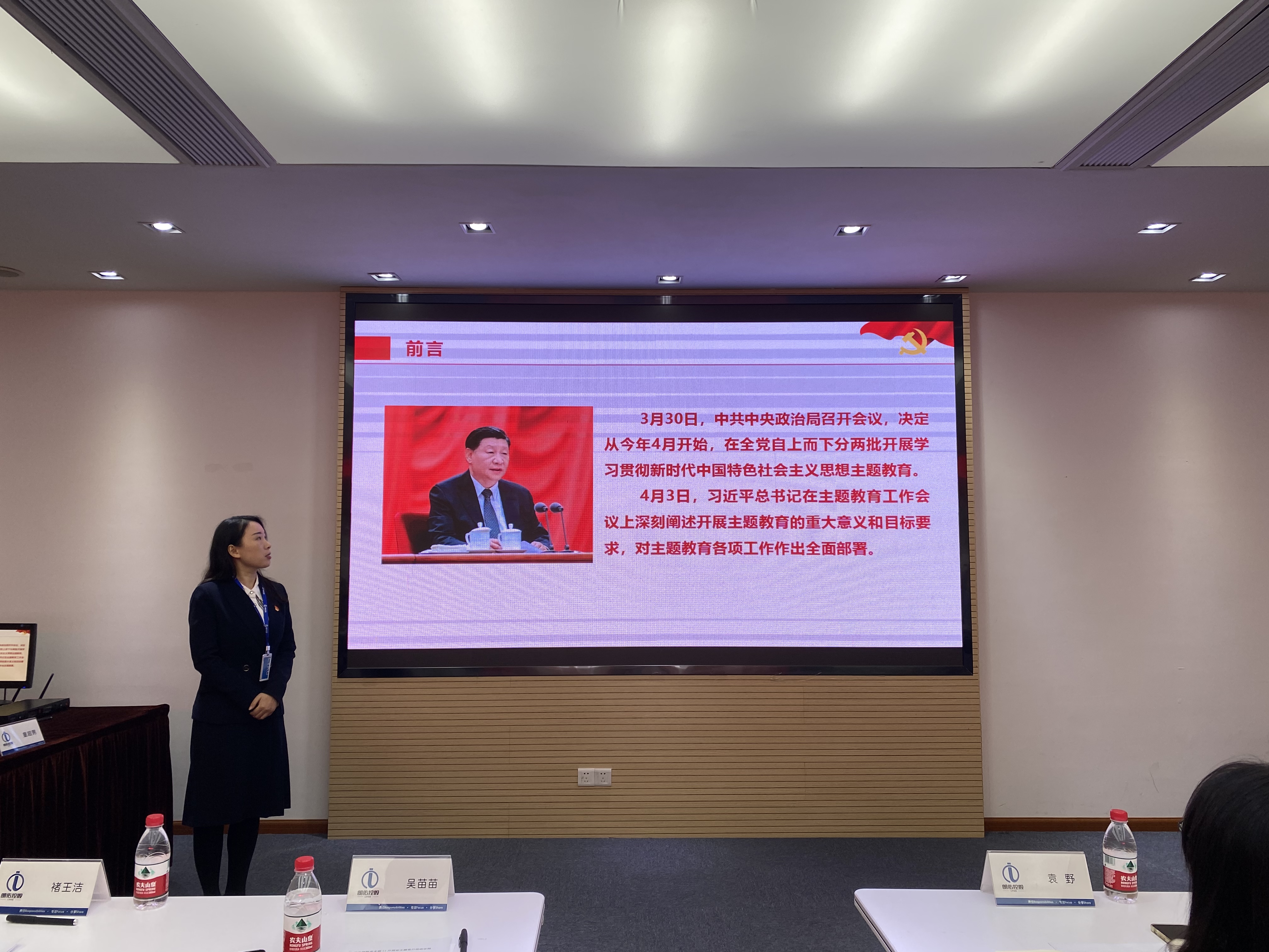 活动第二项为书记讲党课。党支部书记吴苗苗组织开展“2023主题教育知识点”主题教育党课学习。课上,吴苗苗书记带领支部成员学习贯彻新时代中国特色社会主义思想主题教育部分内容,并从主题教育的重要意义、总要求、根本任务及具体目标等方面进行了详细解读。在场党员同志们感触颇深,纷纷表示通过此次主题教育学习,更加坚定了学思想、强党性、重实践、建新功的决心和信心。
