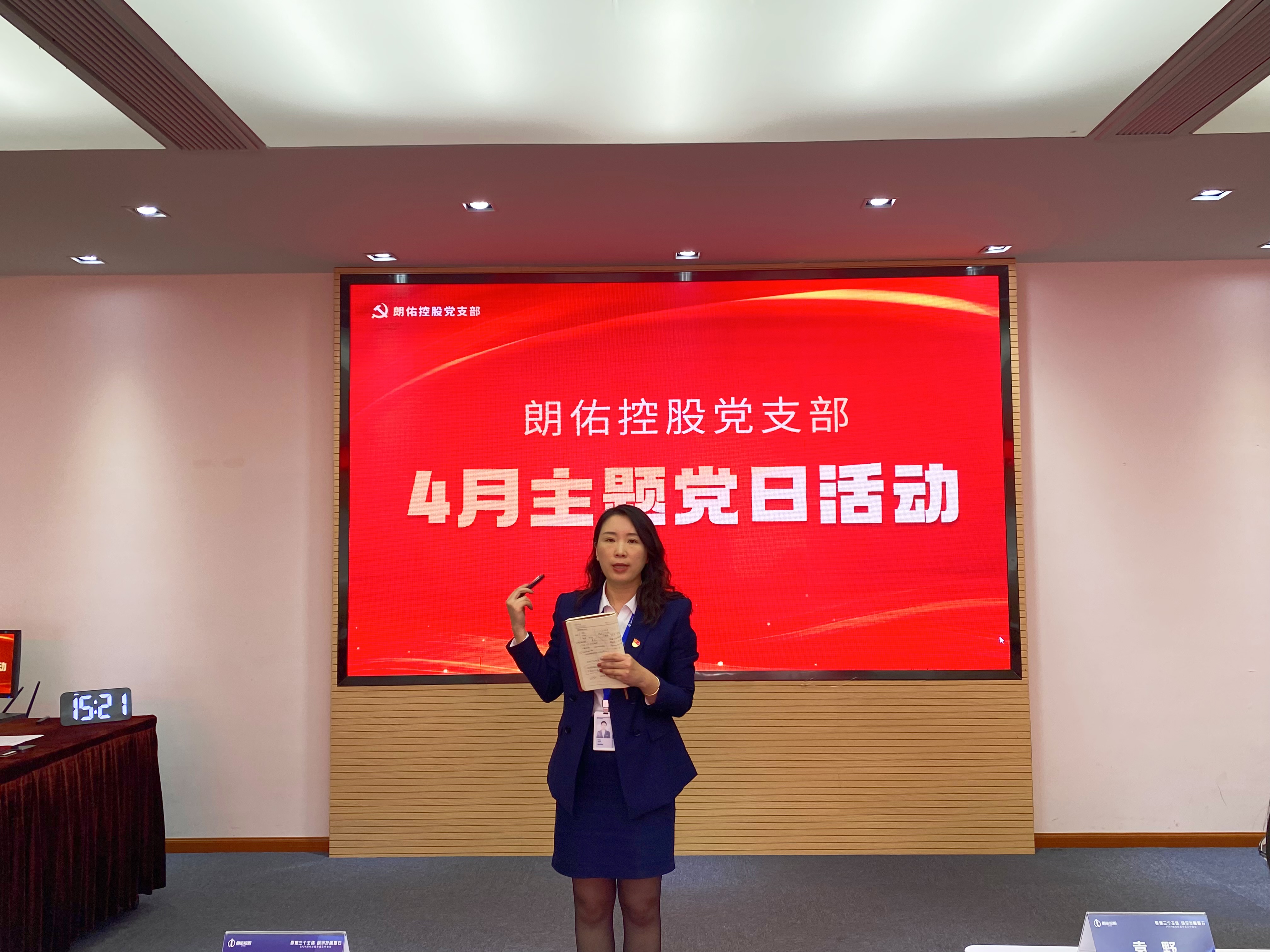 4月15日下午,朗佑控股党支部在朗佑控股大会议室组织开展4月固定主题党日活动。党支部书记吴苗苗、朗佑控股党支部部分党员参加活动,本次活动由褚王洁同志主持。