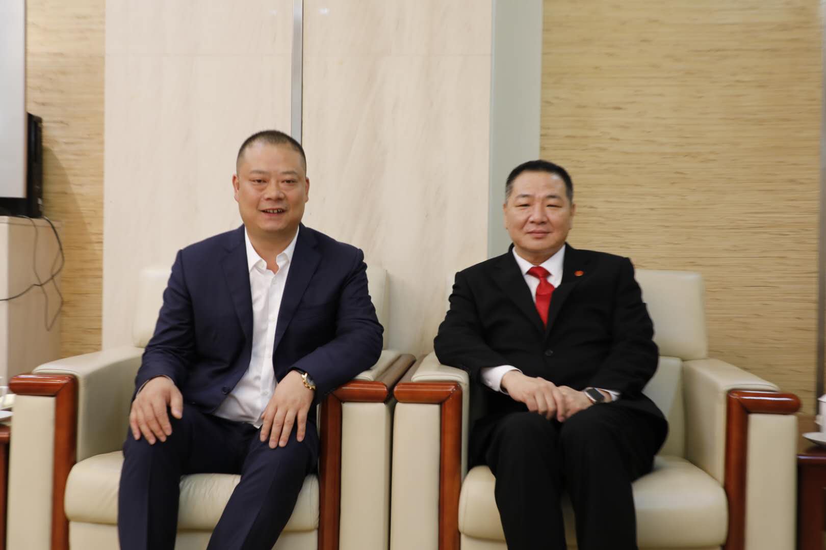 浙江省工商联主席、浙江省商会会长、富通集团董事局主席王建沂与朗佑控股董事长何勇合影留念