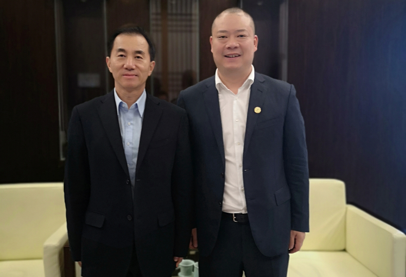 时任全国工商联副主席、四川省政协副主席陈放与朗佑控股董事长何勇合影留念