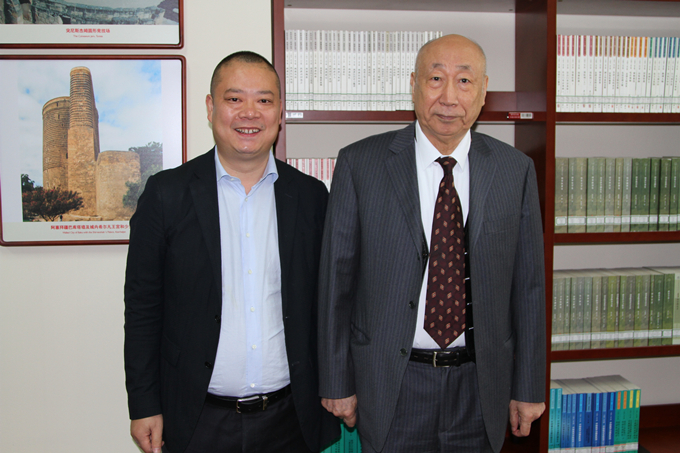 (中国工程院资深院士巴德年和朗佑控股董事长何勇合影留念)