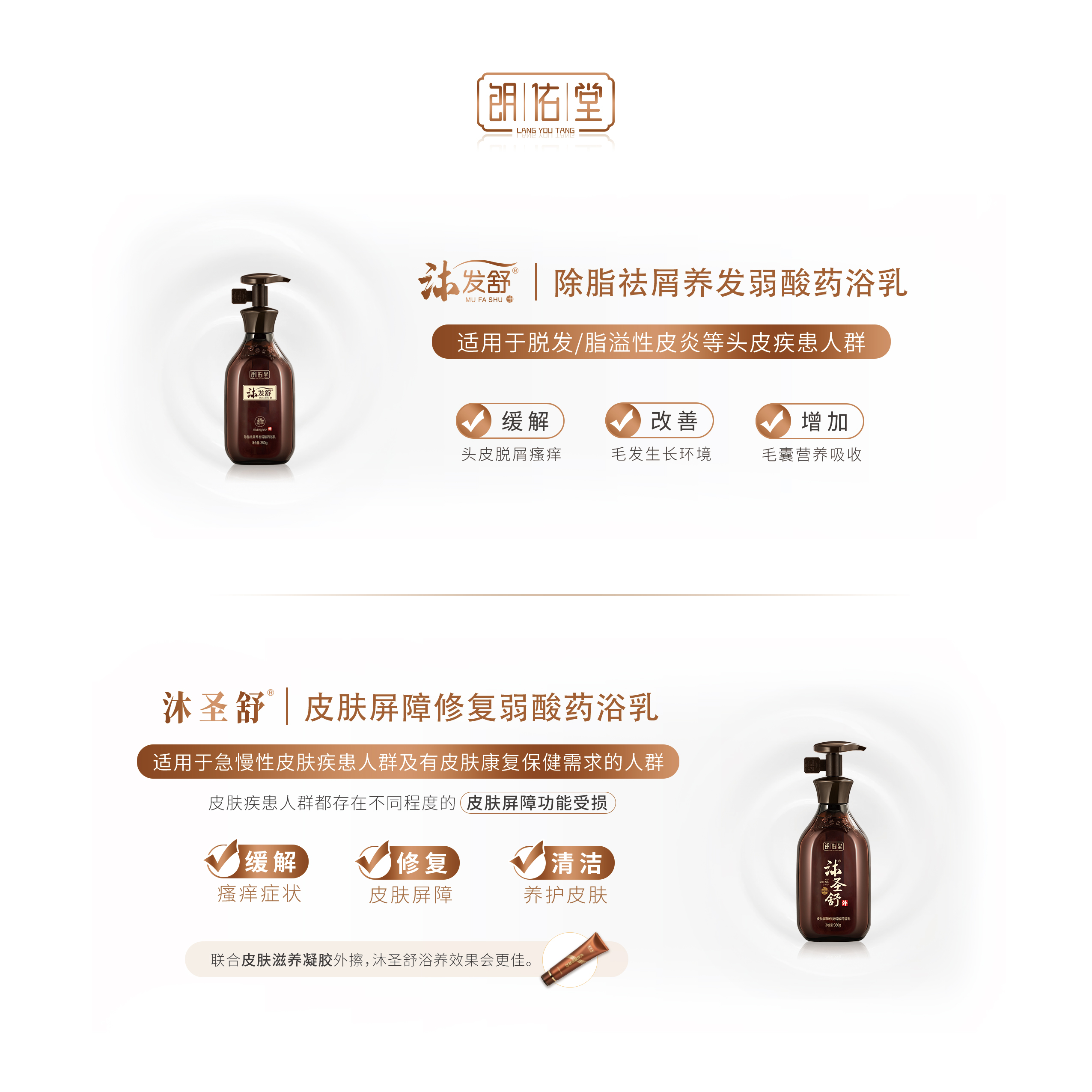 朗佑堂研制的每款中药药浴乳都聚焦刚需人群,助力国人健康洗护升级。比如沐发舒(除脂祛屑养发弱酸药浴乳)由18味植物中药萃取的精华药液组成,聚焦脱发人群和头皮疾患人群的浴养需求,可以有效缓解头皮脱屑瘙痒,改善毛发生长环境,增加毛囊营养吸收。