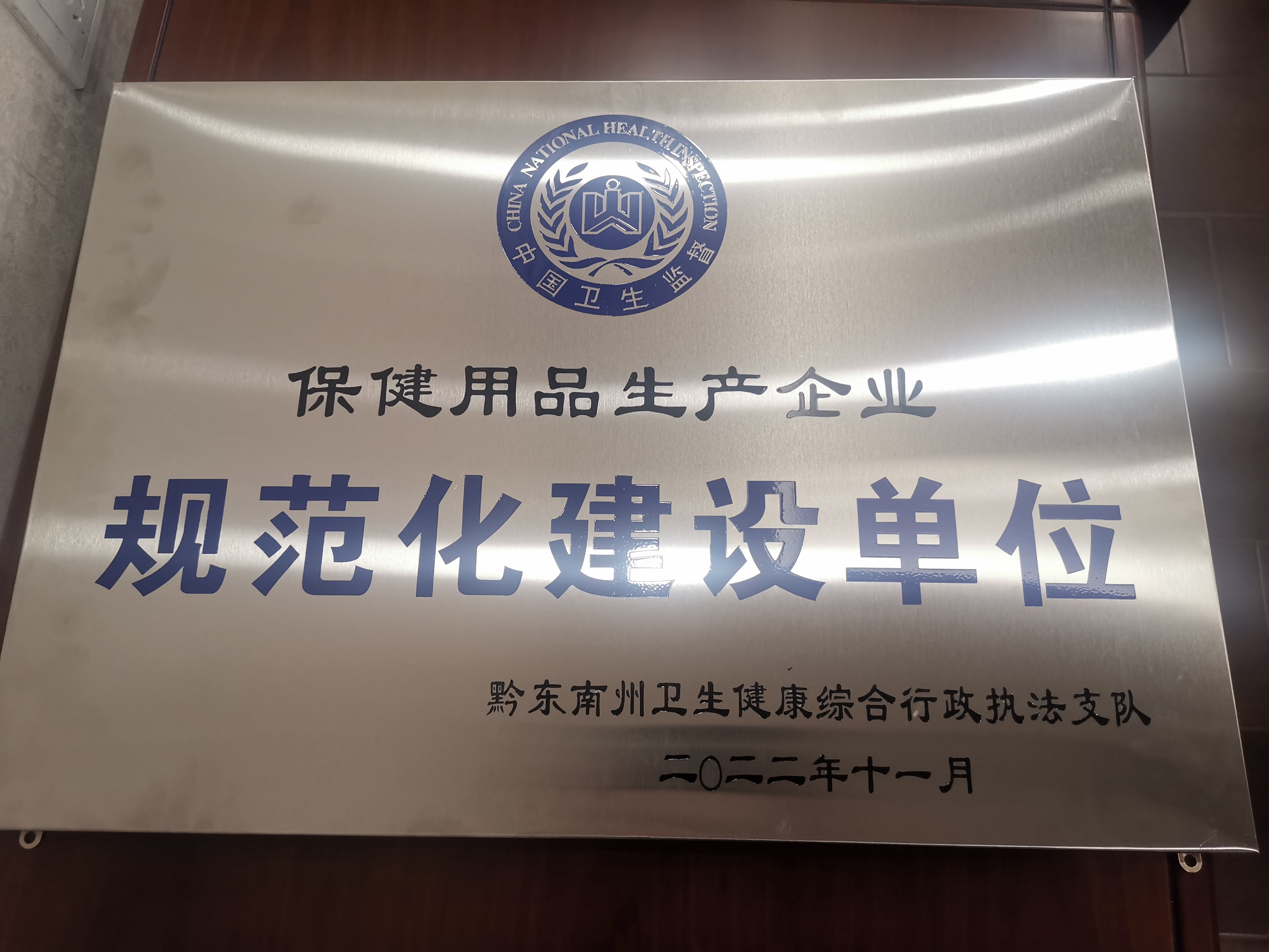 2022年12月8日,贵州省黔东南州召开了保健用品生产企业规范化建设大会,朗佑堂荣获“保健用品生产企业规范化建设单位”授牌,并代表保健用品企业作大会发言。