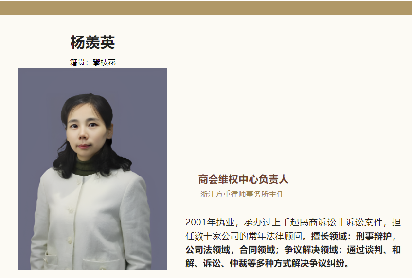 浙江省四川商会维权中心负责人、浙江方重律师事务所主任杨羡英表示,商会维权中心自2020年成立以来,由最初的7名律师发展到现在的11名成员。随着律师以及法律人士参与力量的充实,商会维权中心为在浙川人提供了更加强大、更加专业的法律服务支持,让在浙川人真实地感受到商会维权中心律师团的专业技能、专业素养。